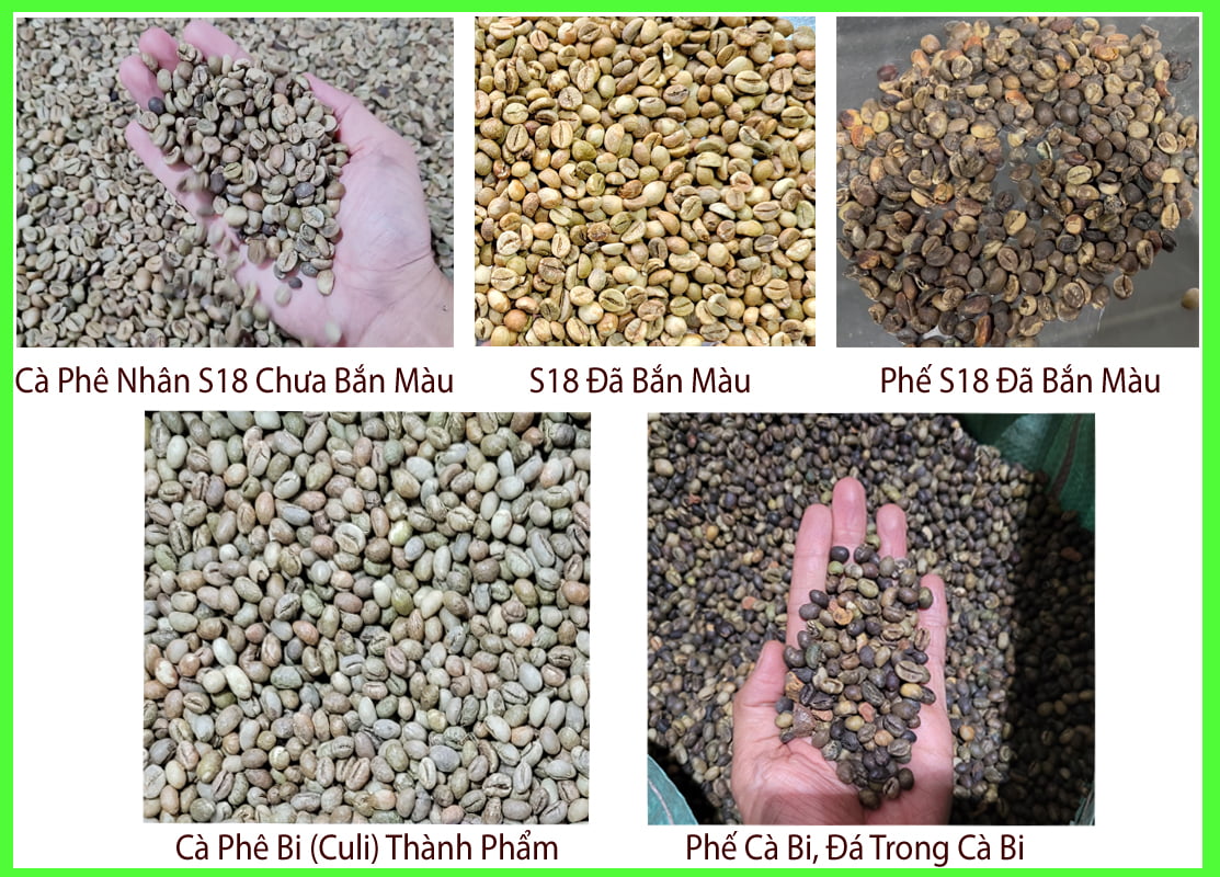 Mẫu hạt cà phê Robusta sau khi đi qua máy bắn màu